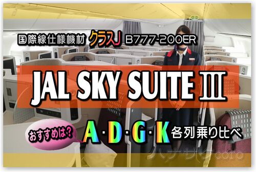 はじめに… B777-200ER型 本来は 国際線中距離用機材 「A・D・G・K」列を...乗り比べてみたい JAL SKY SUITE Ⅲ「A」列 JAL SKY SUITE Ⅲ「D」列 JAL SKY SUITE Ⅲ「G」列 JAL SKY SUITE Ⅲ「K」列 SKY SUITEⅢ A~K列 比較 まとめ ハナサクの 勝手にお気に入り座…